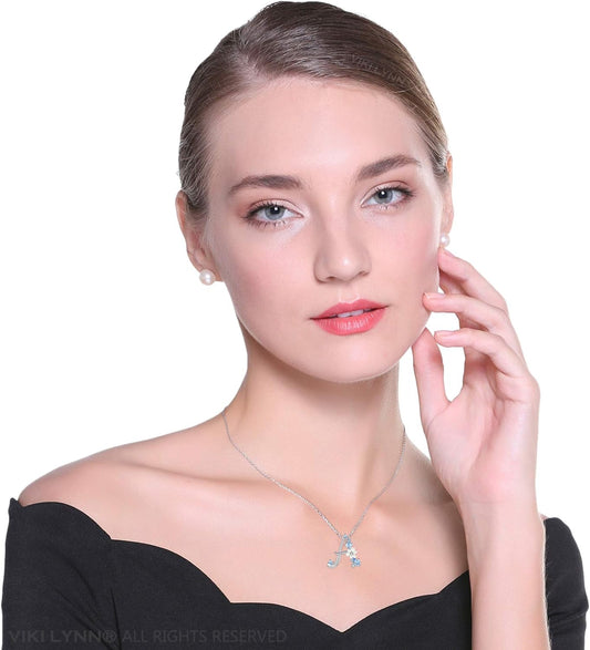 Initial Necklace for Women 925 Sterling Silver Initial a to Z Letter Pendant Necklace with Blue Flower Cubic Zirconia Birthday Engagement Gift for Women,Mom, Couple