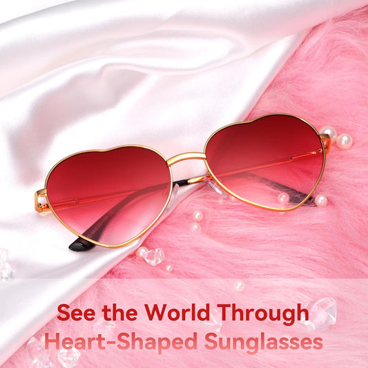 Heart Sunglasses Thin Metal Frame Lovely Heart Style for Women